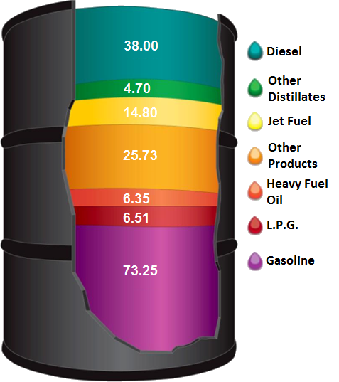 The petroleum products extracted from a barrel of crude oil